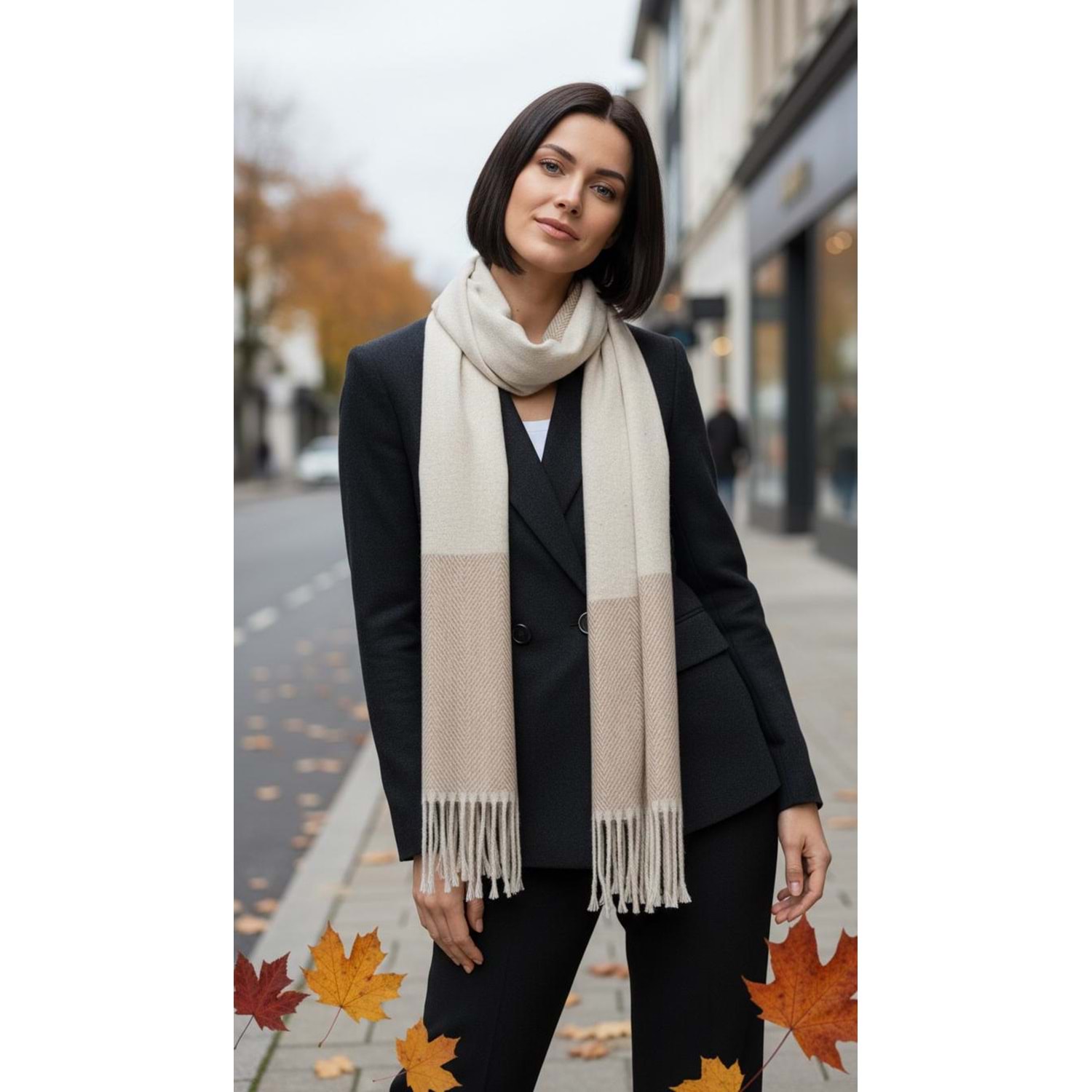 NW Kalın Dokuma İskoç Şalı - NW - ŞAL - A.KAHVE-EKRU - STD