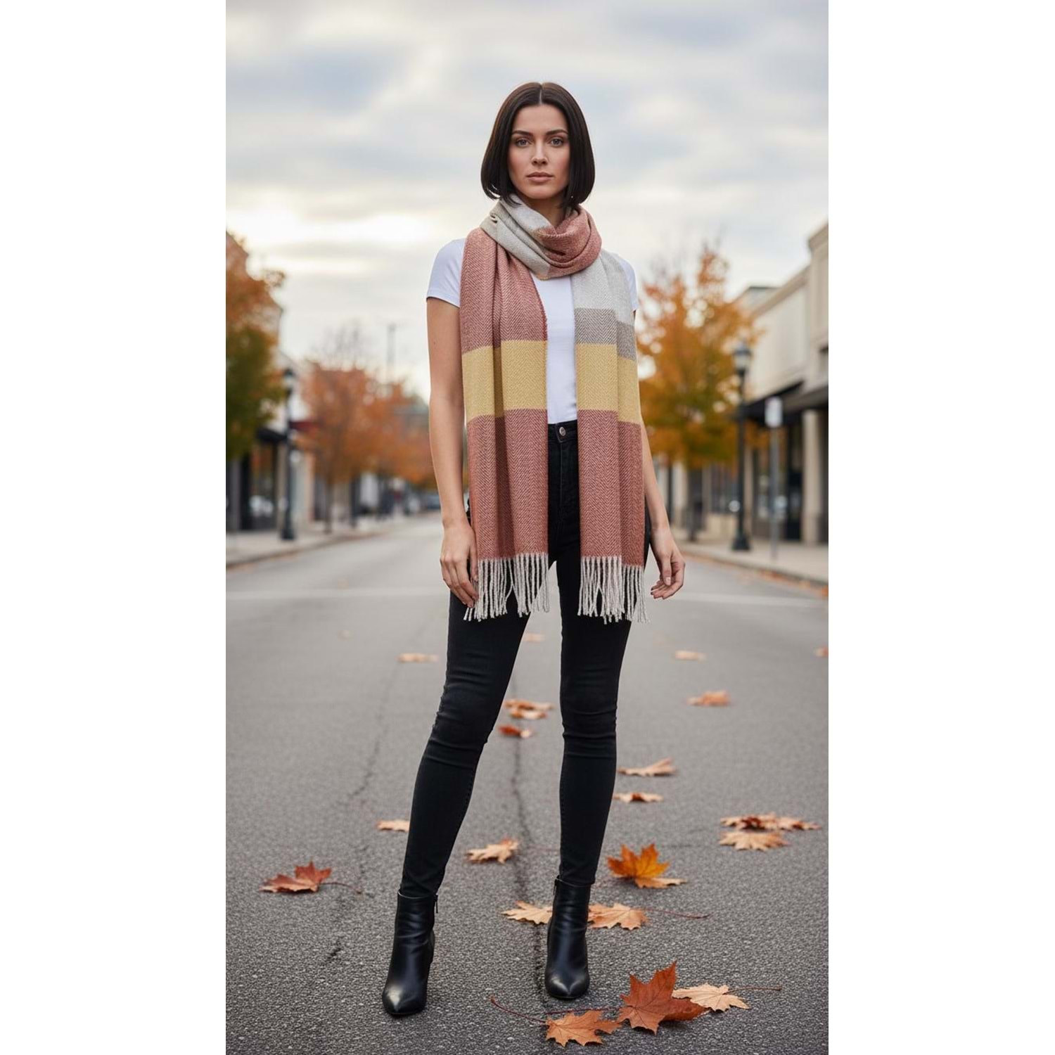 NW Kalın Dokuma İskoç Şalı - NW - ŞAL - HARDAL-KAHVE - STD