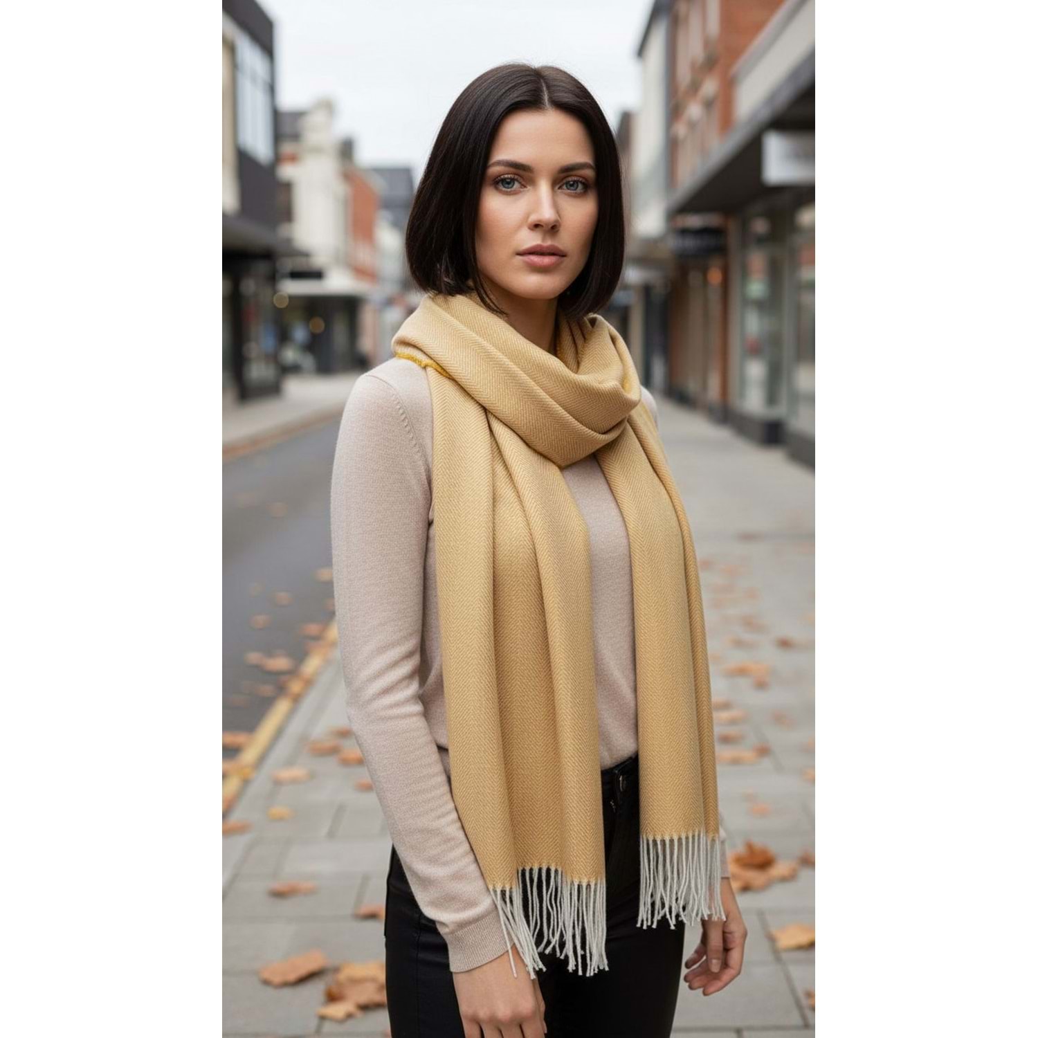 NW Kalın Dokuma İskoç Şalı - NW - ŞAL - SARI-BEYAZ - STD