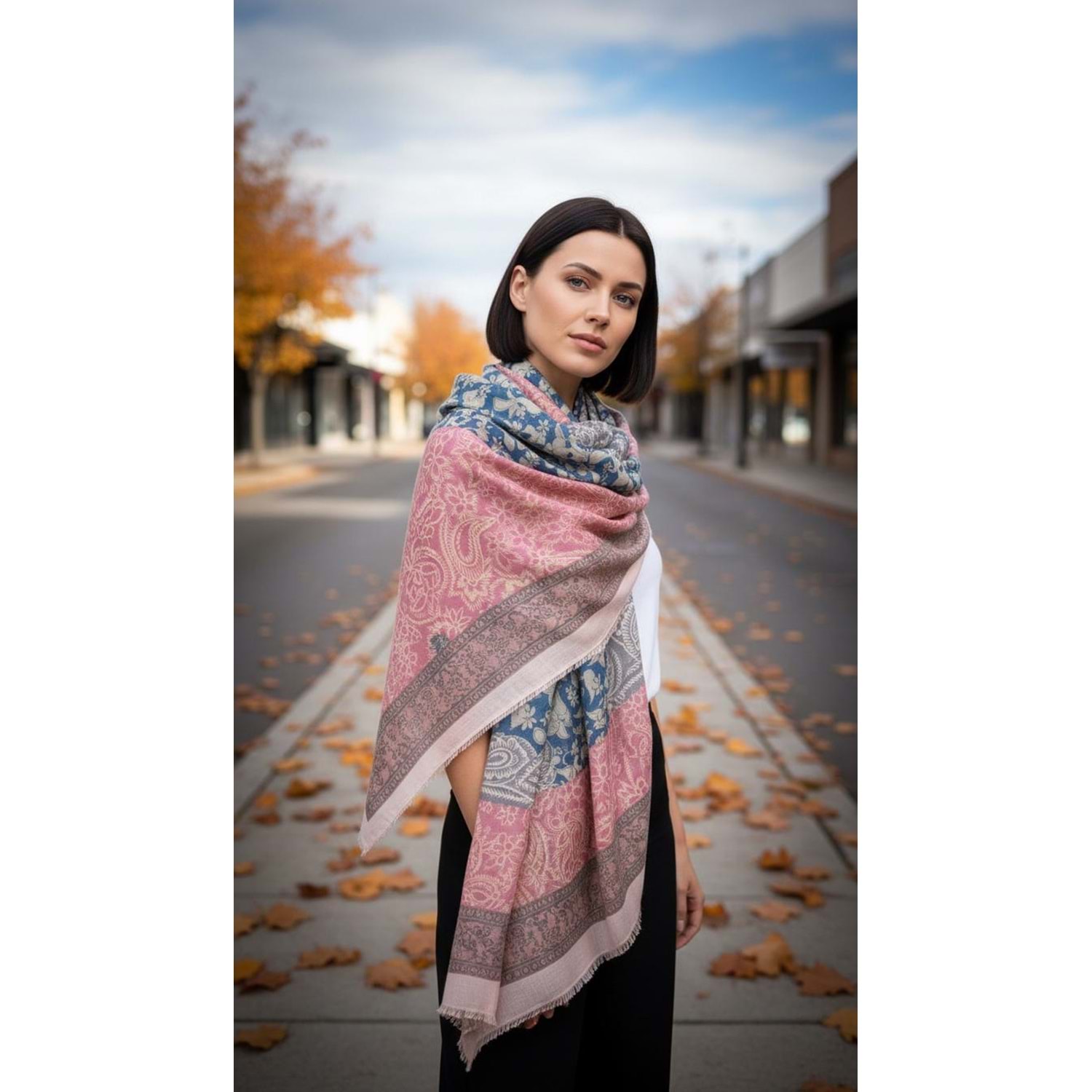 NW SAL 11188 - NW - ŞAL - PEMBE ŞAL DESENLİ - STD